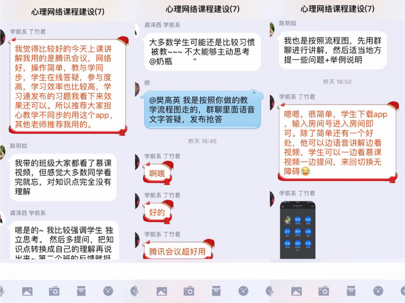 其中丁竹君老师分享了运用腾讯会议提供语音直播,同时配合学习通资料进行讲解的授课方法。这样的方法在一定程度避免了,学习进度不一的问题。