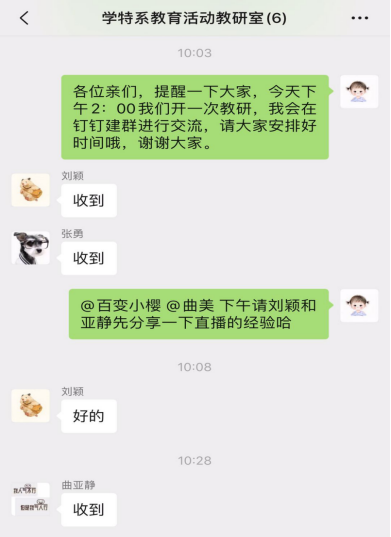 2020年4月14日下午2点,学前与特殊教育活动教研室学科负责人郑莹莹、曾荣、张勇、刘颖、曲亚静、胡云六位老师运用钉钉平台开展了一次网络教研活动。