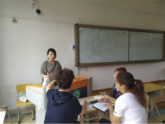 图:孔霞、荣莹、刘爽、王敏四位老师开展教研现场