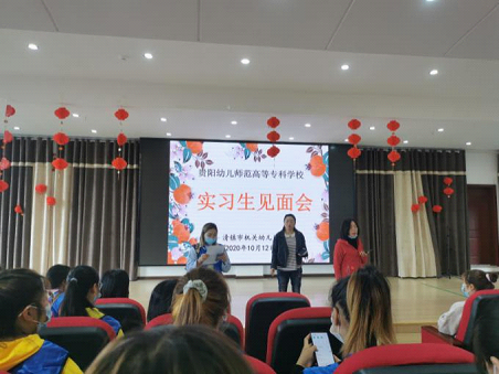 2020年10月12日早上10点,贵阳幼儿师范高等专科学校学前与特殊教育系19级17班学生准时到达清镇市机关幼儿园四楼会议室,清镇市机关幼儿园的胡主任组织学生进行“实习学生见面会”,在会上胡主任对学生入园实习提出园内要求。