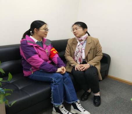 (照片三:曾荣老师与幼儿园张主任面对面对接实习相关工作)