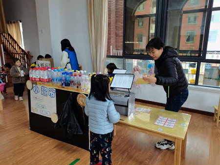 接下来,针对班级区域活动也进行了观摩和交流,针对新投放的角色区——“小超市”的活动进行了观察,在观察中两位老师发现“小超市”区提供的商品标签、价格等材料过多,且较成人化,幼儿在游戏过程中无法辨识某些物品的价格,需要进一步进行调整,接下来学科组老师们会和混龄班教师继续优化和补充班级内的区域材料,丰富区域活动和教室的环境创设。