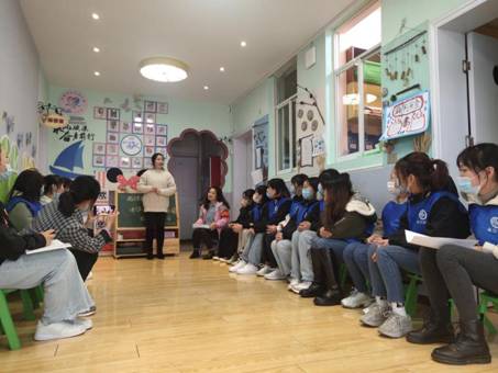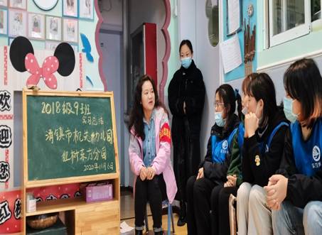 (图片三:清镇机关幼儿园红树东方幼儿园负责人常老师带领同学们总结实习工作内容)