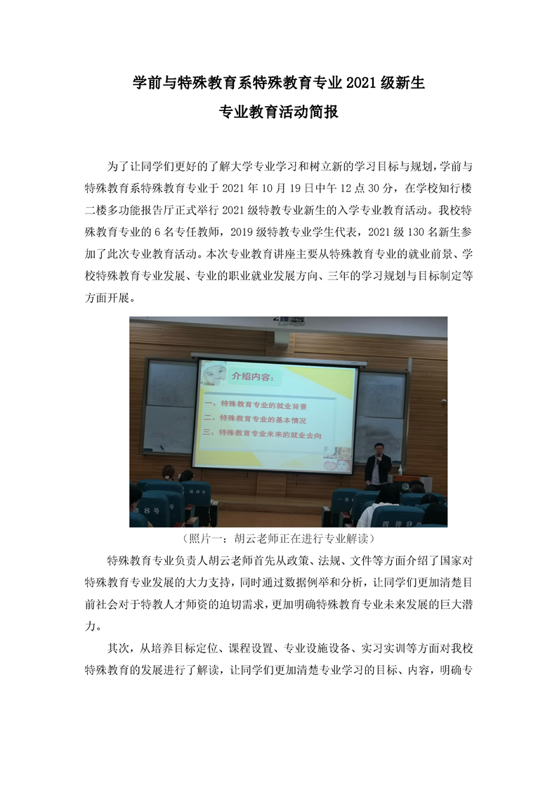 学前与特殊教育系特殊教育专业2021级新生专业教育简报