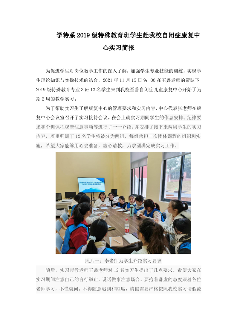 学特系2019级特殊教育班学生赴我校自闭症康复中心实习简报