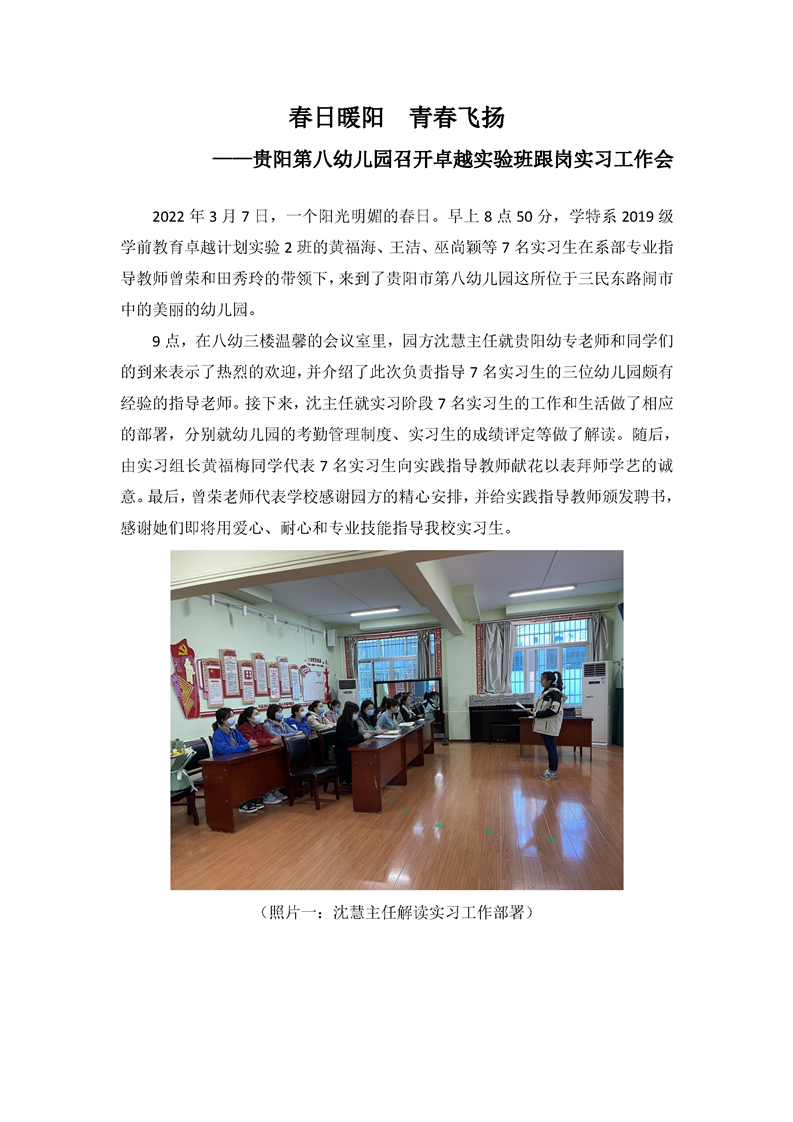 贵阳第八幼儿园召开卓越实验班跟岗实习工作会