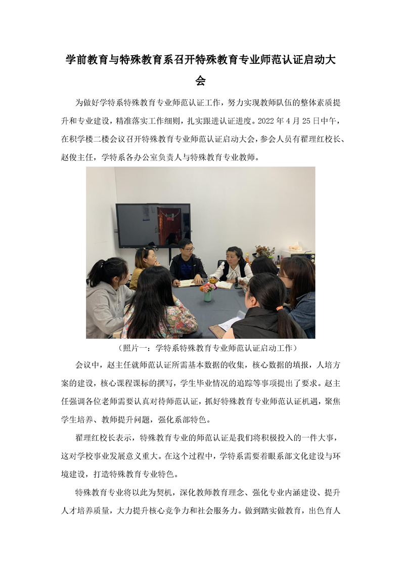 学前教育与特殊教育系召开特殊教育专业师范认证启动大会