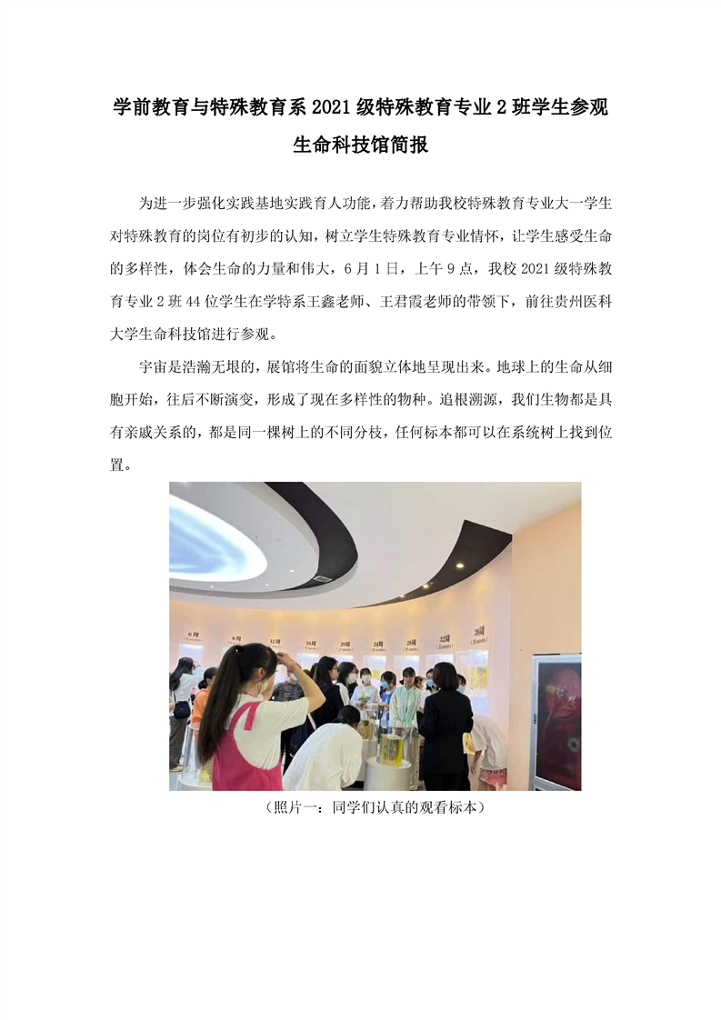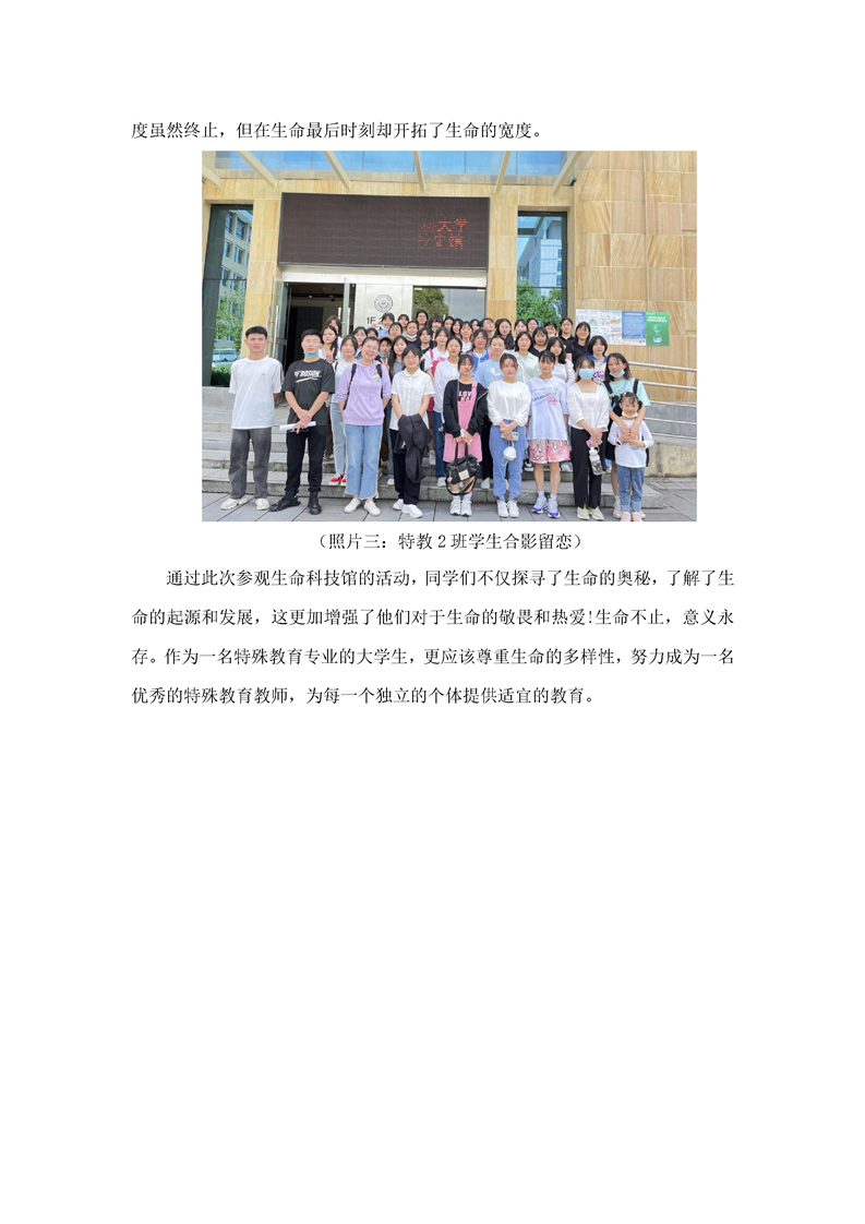 学前教育与特殊教育系2021级特殊教育专业2班学生参观生命科技馆简报
