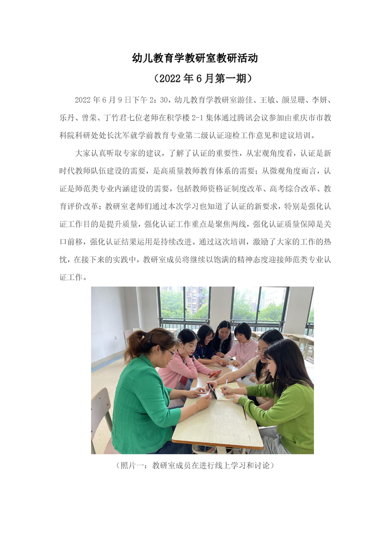 幼儿教育学教研室教研活动 (2022年6月第一期)