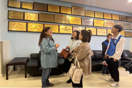 其次,赵老师给学生介绍爱心家园的工作人员以及岗位分布,并亲自带领学生参观了教学楼和办公区域。接着赵老师带领实习生们来到会议室,工作人员播放了两段关于特殊教育领域的视频,学生了解了更多关于特殊教育的专业知识;同时结合视频,赵老师介绍了现场两位获得过特殊教育奥斯卡奖项的老师,并请两位老师带领实习生分组进班旁听观摩教学现场。